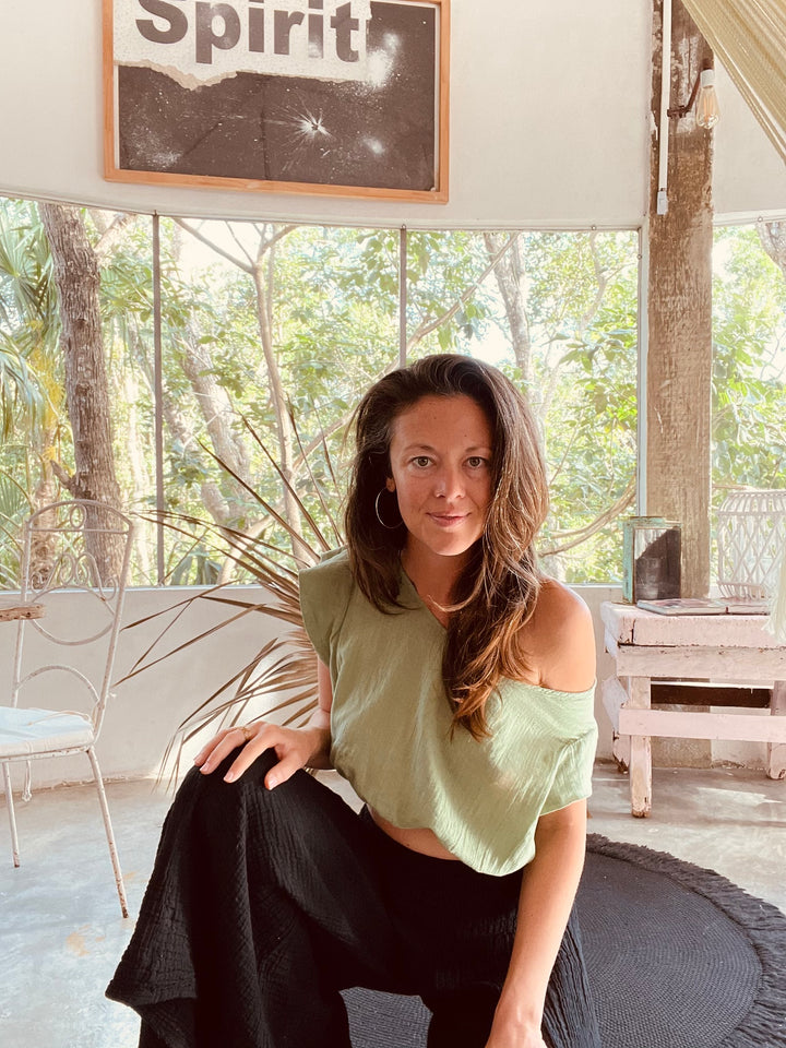 Cotton Flower was born in 2014, a time when many Americans were becoming more embodied with yoga and meditation. At that time, the yoga clothing available was plastic and restrictive. Yogi Sarah was searching for clothing that made her skin and being feel happy, elegant, and free. In truth, she had been searching for this her whole life.