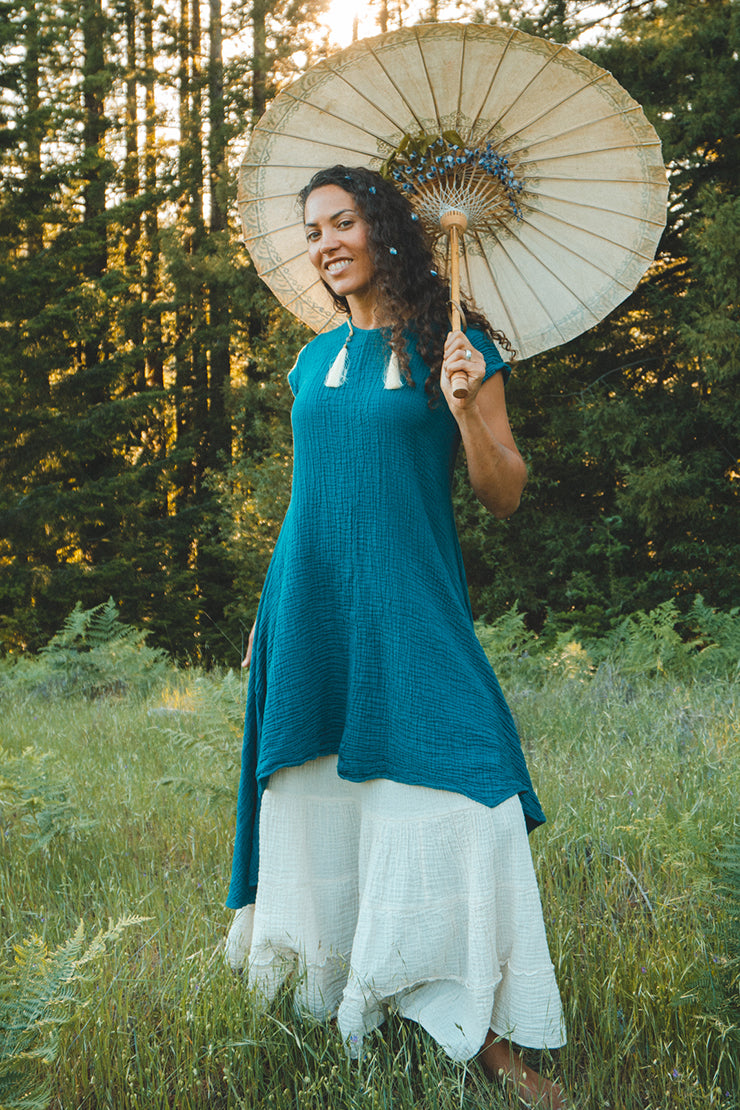 Our cotton tee dress comes in one size. Here are women of different sizes wearing it